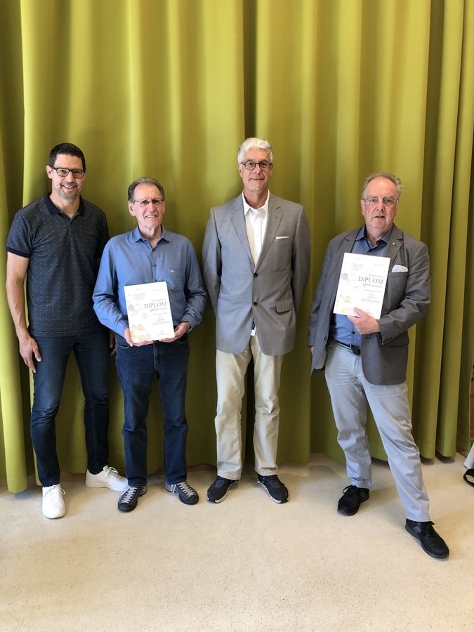 Zwei Vorbilder unserer Sektion wurden am 19. September 2025 an der 38. AV-Tagung des Kantons Zürich für ihre Dienste in der Branche wertgeschätzt. Thomas Frick und Werner Frei sind nun Ehrenmitglieder der GEOSUISSE Sektion ZH/SH. Vielen herzlichen Dank für euer Engagement!